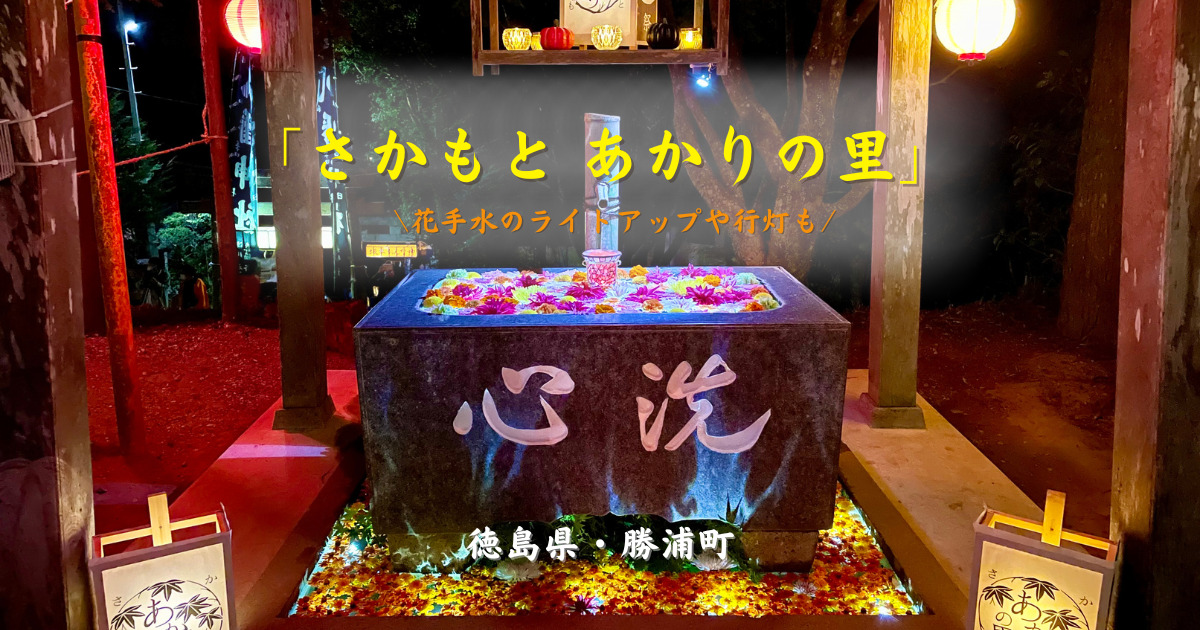 今回は、勝浦町の坂本八幡神社で毎年開催されているイベント【さかもと あかりの里】をご紹介しました。800基もの行灯(あんどん)や花手水のライトアップ、花火まで!見どころたくさんなお祭りに、みなさんもお出かけしてみてはいかがでしょうか?