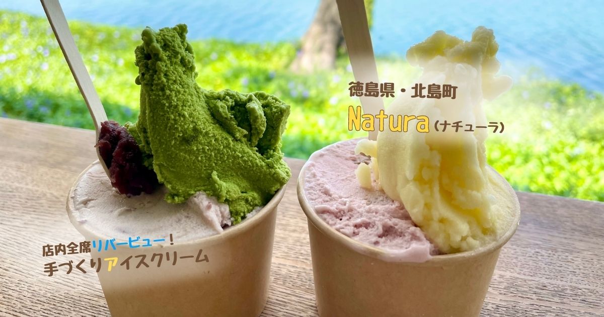 これから暑くなるこの季節にぴったり!店内全席リバービューで、旧吉野川を眺めながら手づくり&作りたてのアイスクリームが食べられるナチュラルアイスクリーム【Natura(ナチューラ)】さん!みなさんも、お出かけしてみてはいかがでしょうか?